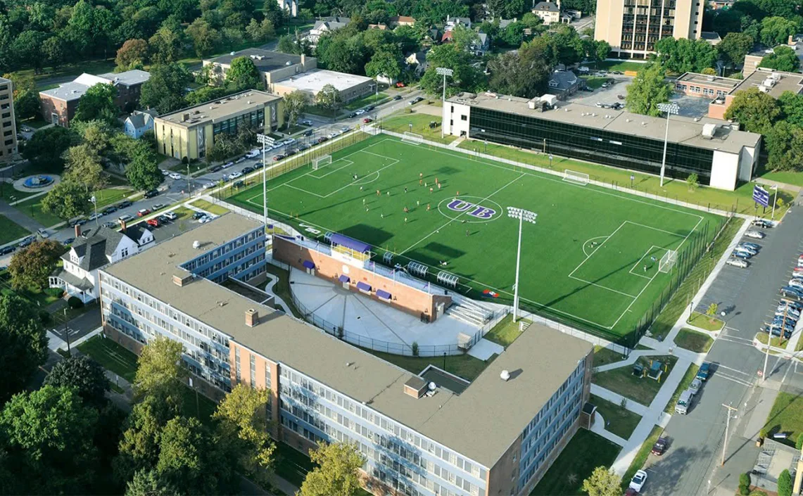 Vị trí địa lý thuận lợi là một trong những lợi thế nổi bật của UB. Trường chỉ cách thành phố New York khoảng 1 giờ 20 phút và cách Boston khoảng 2 giờ 30 phút lái xe, mang lại nhiều cơ hội tiếp cận các trung tâm kinh tế, tài chính, công nghệ lớn của nước Mỹ.